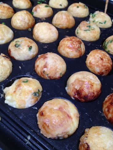 一度にたくさん作られるホットプレート式たこ焼き器。